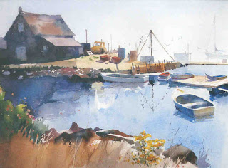 Greens are probably the trickiest colors to use for my watercolor students. I have my favorites and standbys. Pthalo green mixed with quinacridone gold gives you olive. I do have olive green, but really it is a convenience mixture good for covering large areas when I want to paint fast. I used to use sap green but can't stand it any longer. I don't like my students using it either. Sap green looks like the green oval in a children's watercolor set and there is no faster way to make your painting look amateurish than using sap green the wrong way. That said, I know that Mel Stabin uses sap green magnificently.
