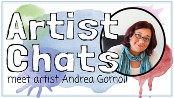 I’ve always admired Andrea’s YouTube videos she shares from her studio in Germany. She’s very adventurous with her art. She’s happiest when her hands are covered in paint, ink and glue from art journaling, mixed media art and whimsical paintings. She’s been a full-time artist since 2009 and today she also is an art instructor, designer and wedding photographer.
