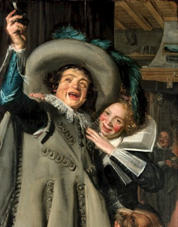 The genre paintings differ from Hals more formal portraits. Here we see lots of dirty teeth, an unusual body part for a fine art portrait.Most faces in formal portraiture are depicted with lips closed or only slightly parted. Both types of paintings share the same candid poses not convincing captured again in fine art until the introduction of photography some 300 years later. In his naughty genre paintings, Hals has fun introducing phallic symbols and less subtle signs of debauchery such as prostitution, smoking, and raucous pubs which he depicts in a nonjudgmental manner.Â