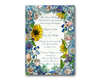 Perhaps you don't want to come to the wedding empty handed. In that case you may want to send me the plain wedding invitation and I will send it back to you embellished with watercolor flowers. This wedding guest was able to tell me the bride's flower arrangements and I added the flowers as a hand painted watercolor floral border all the way around the artwork. A masterpiece that is frame-able and will make a wonderful wedding keepsake.