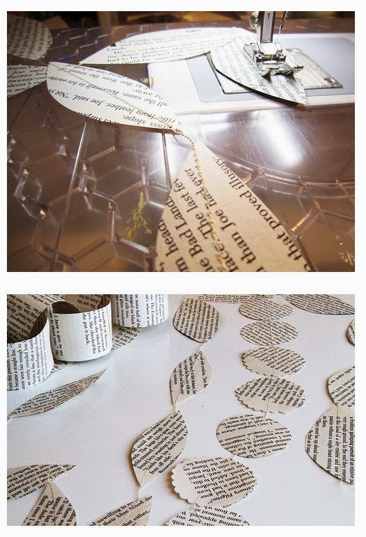Anyone else following Alisa Burke? She is very generous on her blog with weekly free projects and tutorials. She has an easy banner project using book pages. All you have to do is feed shapes through the sewing machine. Check out her post for instructions plus more book page projects.