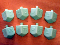 A great gift appropriate for people of all ages are these dreidel soaps! They are about 2 inches wide and about 2 inches tall. They would be great for your decor, kids' bath time or for an unusual Hanukkah hostess gift!
