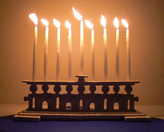 White Porcelain Menorah By Ceramic Artist Celeste Welch |