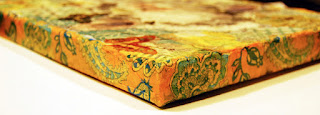 For these I also carried the motif to the sides. For the hen painting, I changed my boring black sides to a nice parchment cream and added English cottage roses. For the sheep painting, I painted the sides a bright yellow and added French country blue paisley. These whimsical touches mean not only do you not need a frame to display this canvas art but you really wouldn't want one!