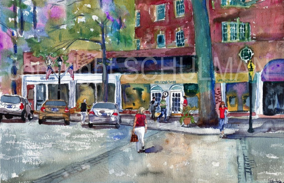| Scarsdale Village Street Scene in Watercolor by Miriam Schulman |