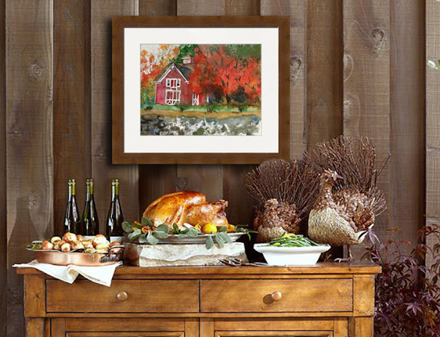 Corn mazes and hayrides. Pumpkin fests, harvest moons and farm animals. So many fall images are tied to the family farm. Framed by a crimson-tinted tree, this romantic red barn warms my heart.