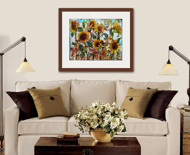 collect a sunflower print (as pictured above) in your choice of sizes or add a touch of luxury to your home with this original canvas which is perfect to hang over a headboard or sofa.