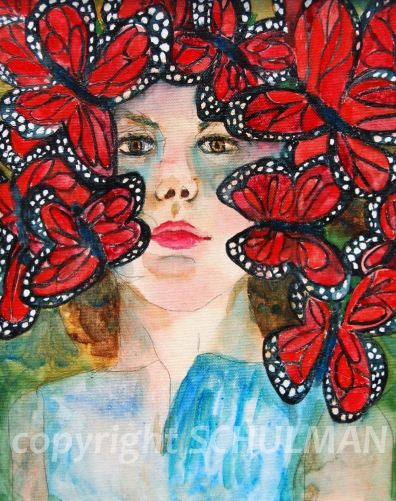 | Butterfly Fairy-Goddess, 11x14" watercolor on Canvas Board by Miriam Schulman |