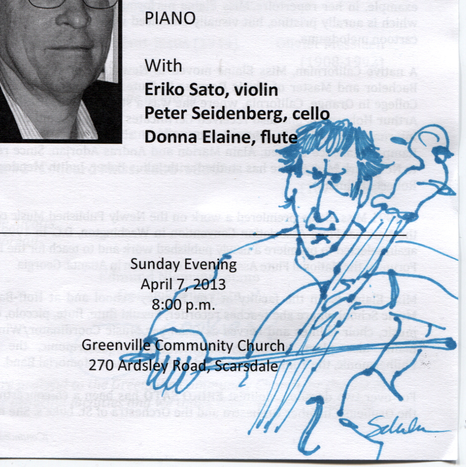My daughter made me go to a faculty concert at her music school. The music was good-- I mean this being New York, the teachers are all seasoned professional musicians ...but me being me, my mind started to drift. First, like an immature school girl I began scribbling notes to my daughter about what I thought of...