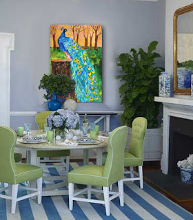 | An Atlanta home decorated by Miles Redd reimagined with peacock art by Miriam Schulman. Discover both original peacock art and also peacock prints |