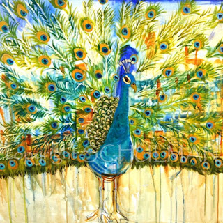 So there is a really large peacock painting in my living room right now and I am trying not to get attached to it since this is just a foster painting. There are paintings I paint for myself that I never have any intention of selling... such as paintings of my children. On the other hand, there are paintings that I fully intent to set out into the world and this peacock painting is one of them.60"...