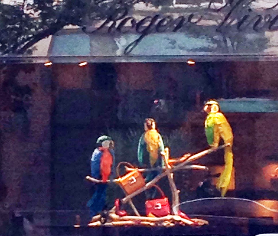 More tropical birds, this time used just as display props in shoe and handbag store. |