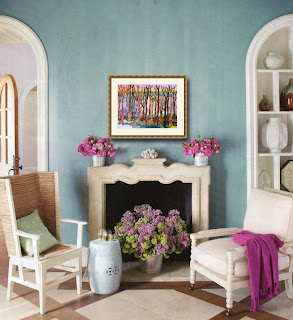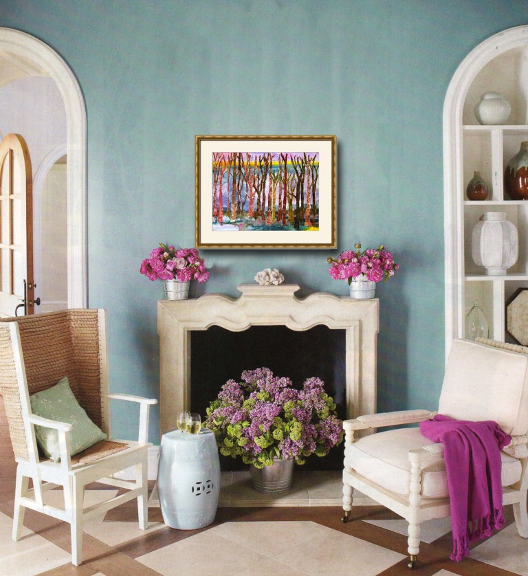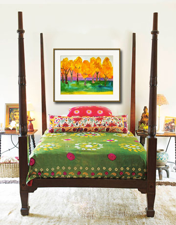 Designer Kathryn M. Ireland used her own color-saturated fabrics, which pack a punch in this guest bedroom. Featured in the March 2008 issue of House Beautiful. Room is re-imagined with my artwork.Â